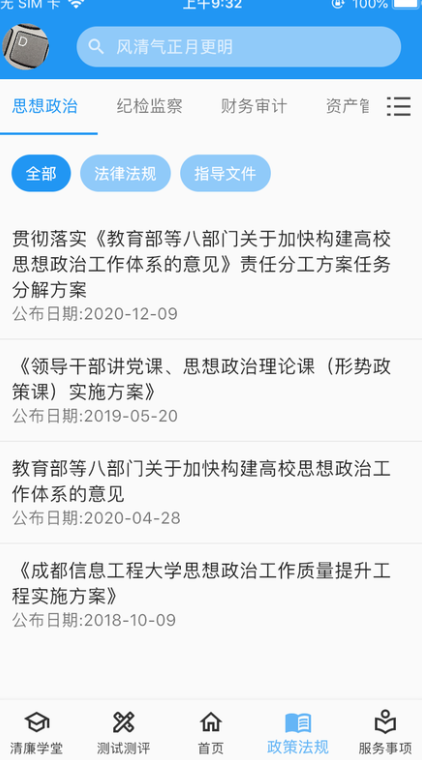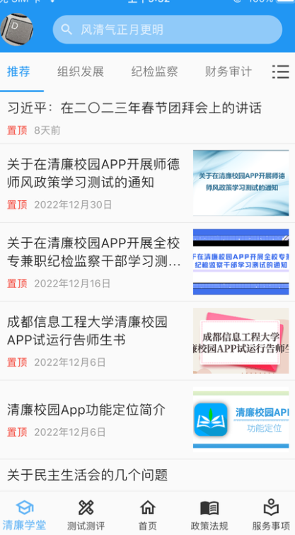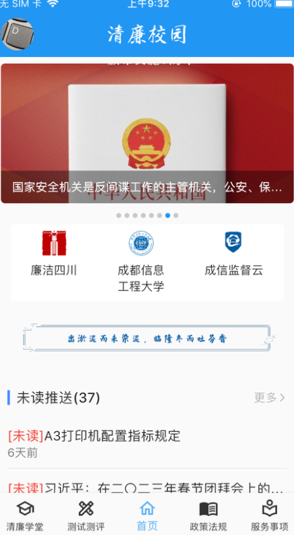 为高校打造的廉洁文化建设宣传学习平台,由成都信息工程大学推出,可了解最新资讯、政策,进行测试测评,还有完善的服务功能,学生工作、教学管理工作更好开展,需要的朋友赶紧来下载吧。