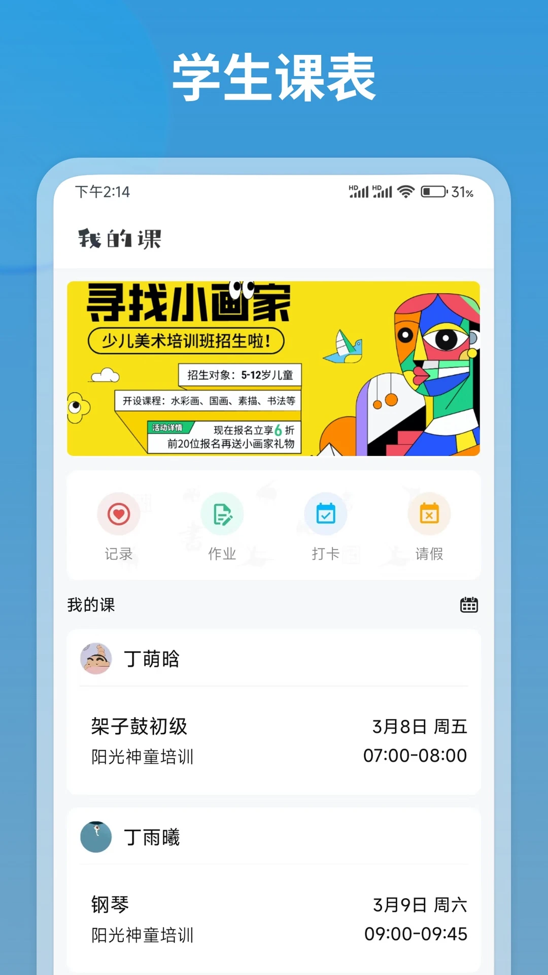 教务管理,机构管理,课时管理,为机构提供教务管理、机构管理等功能;为老师和学生提供课时管理功能;专为小型培训机构开发的免费的高效管理系统。