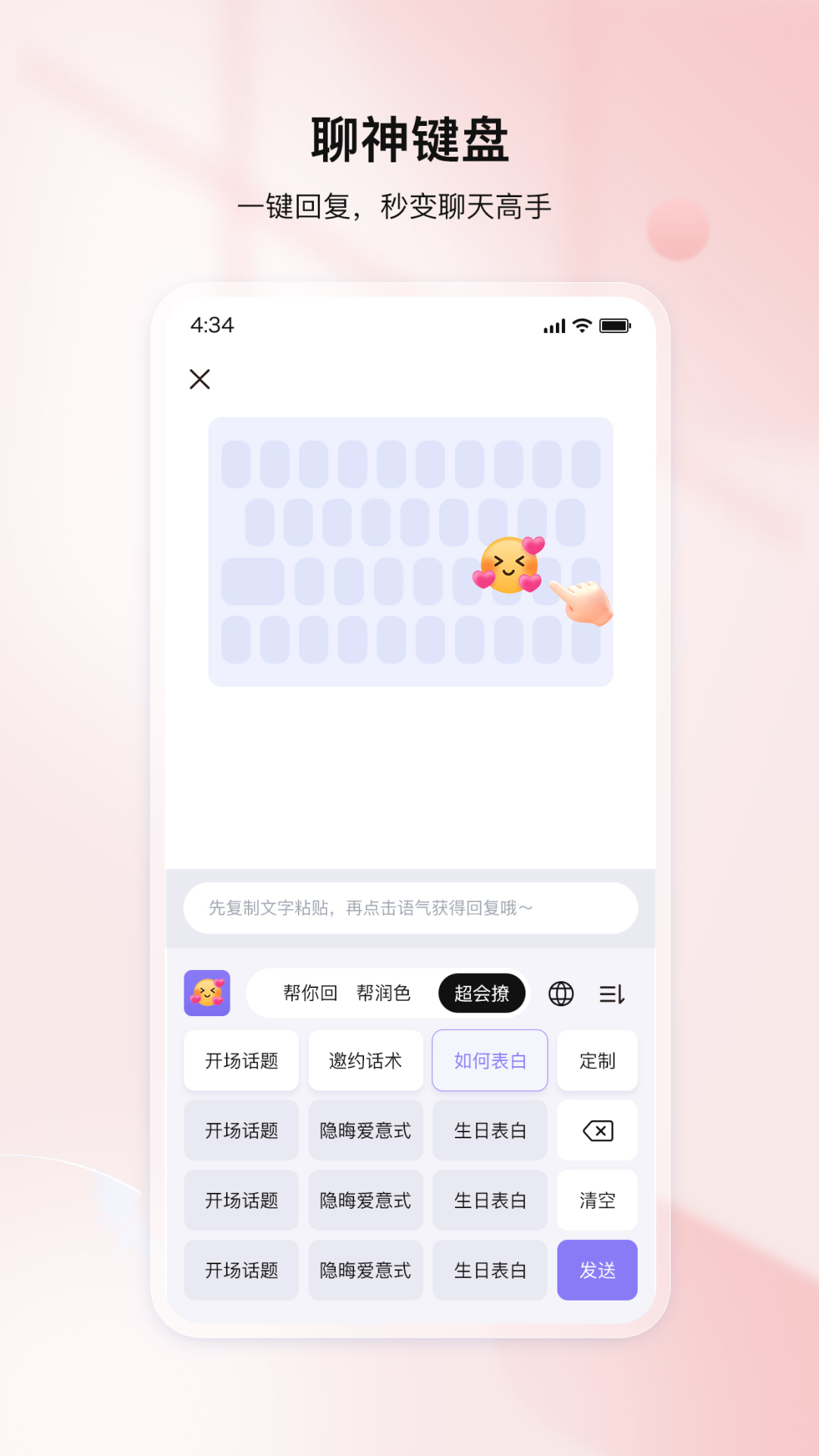 新增:恋爱情侣聊天话术键盘,一款能够智能实时回复、一键润色、生成智能开场白的恋爱聊天神器。