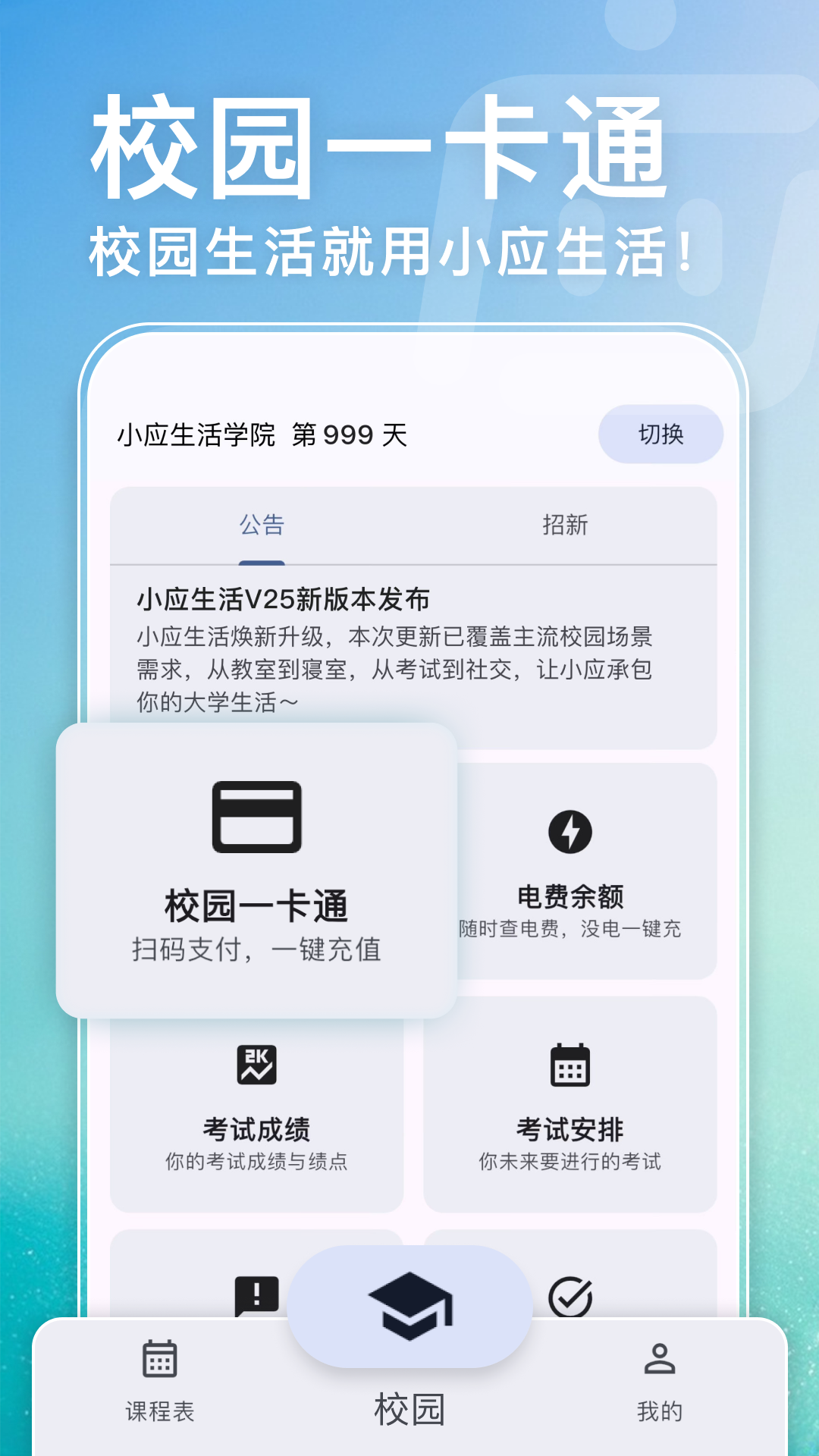 小应生活焕新升级,本次更新已覆盖主流校园场景需求,从教室到寝室,从考试到社交,让小应承包你的大学生活~
