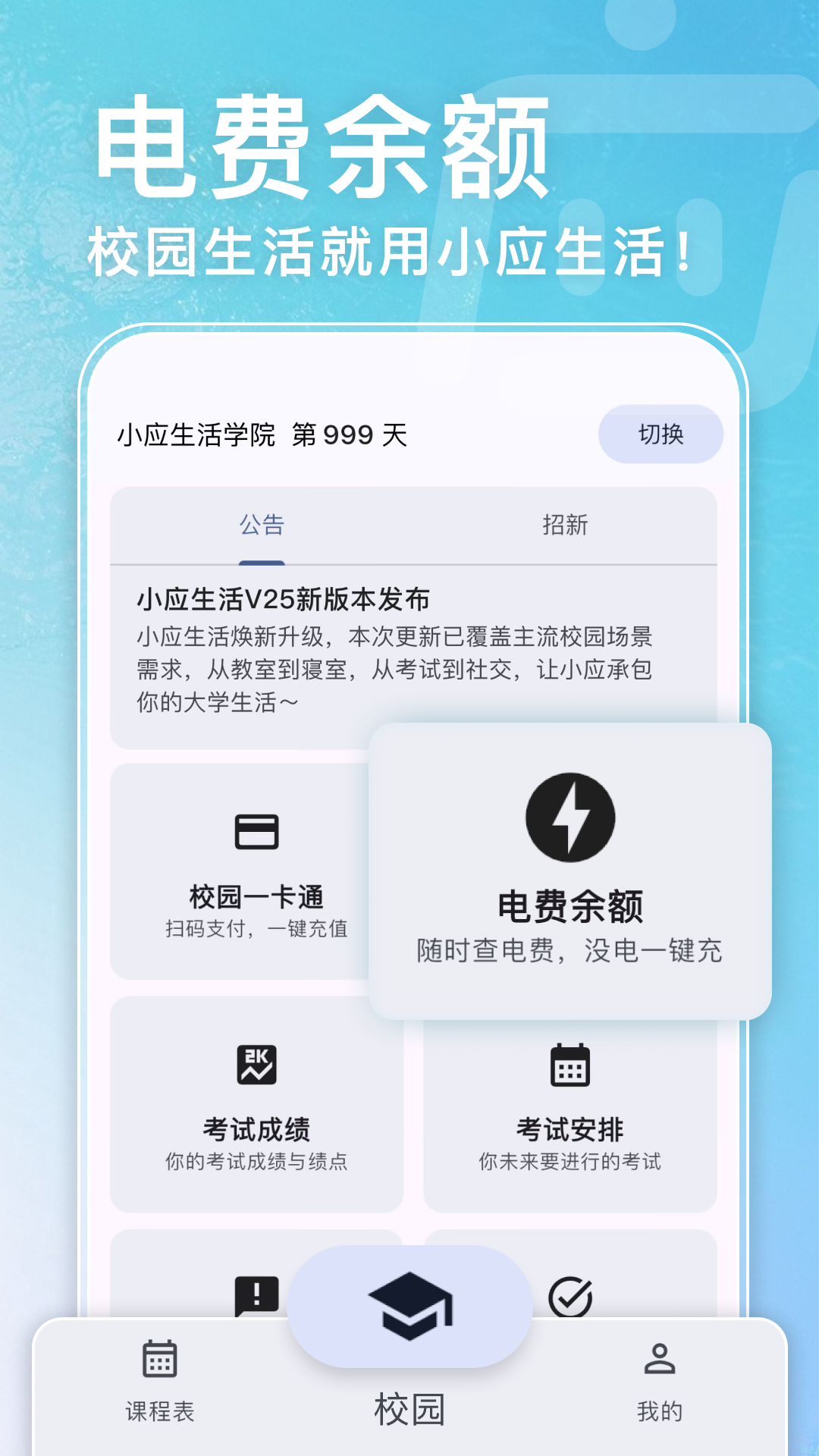 小应生活app是一款为用户的校园生活提供多种便利的软件,它支持各大教学系统的课表导入,而且还能够看到电费的消费情况,避免电费拖欠停电的情况发生,而且操作起来也非常的简单,还支持多语言的相互切换,需要的朋友们快点来下载试试吧!