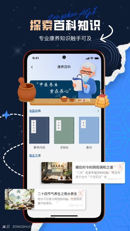 1、软件提供详尽的百科知识库,涵盖养生计划、文化学习等内容,让用户能够便捷地获取传统智慧,提升生活质量。