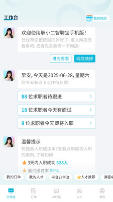 职小二智聘宝app是非常给力的线上招聘辅助平台,可以很好的服务于广大的求职者和企业,随时可以在线来发布自己的招聘岗位信息,有任何的求职者动态都可以第一时间来提醒你,大大提高了处理消息的效率,让你可以更快时间找到满意的人才,平台也可以根据企业的招聘需要,快速的匹配符合条件的人才,让招聘更加的简单。