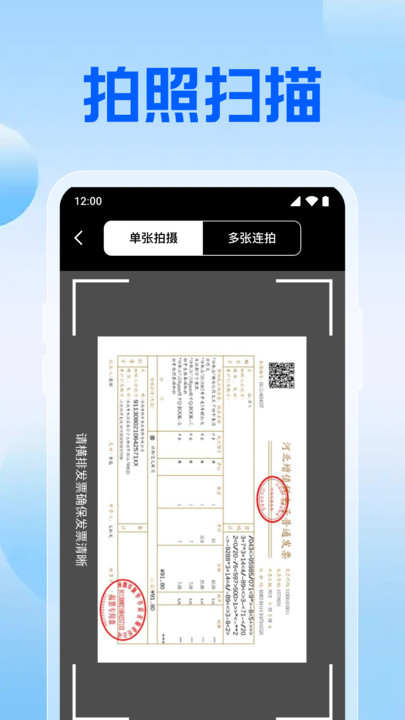 1、用户可以通过手机拍照的方式快速识别发票信息,无需手动输入,大大提高了录入效率。