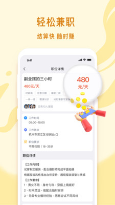 1、提供灵活兼职机会的App,为零工经济群体提供海量、真实的日结与短期兼职岗位。