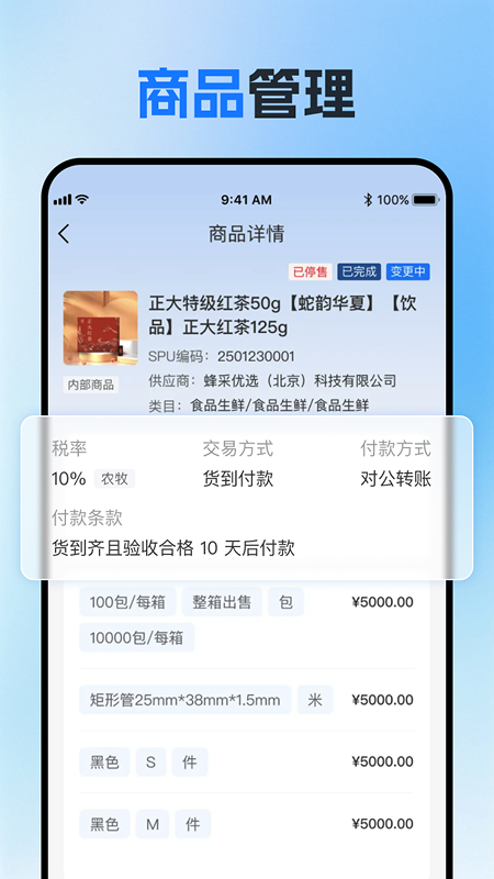 3、覆盖采购需求提报、审批、寻源、订单生成、收货验收、对账结算全链路,实现采购全流程自动化。