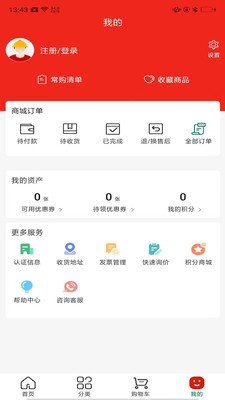 4、能够在个人中心查看常购清单和收藏的商品,商城的订单也可以随时查看。