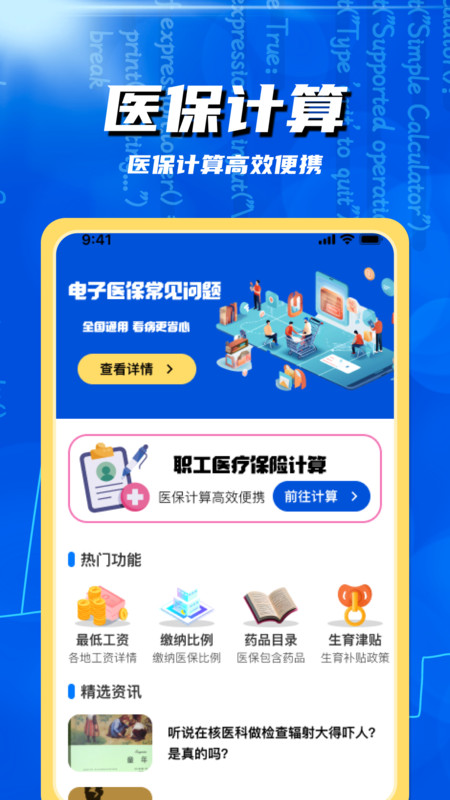 1、医保板块提供职工医保测算工具,同步更新最低工资标准与药品报销目录。