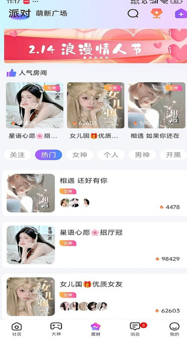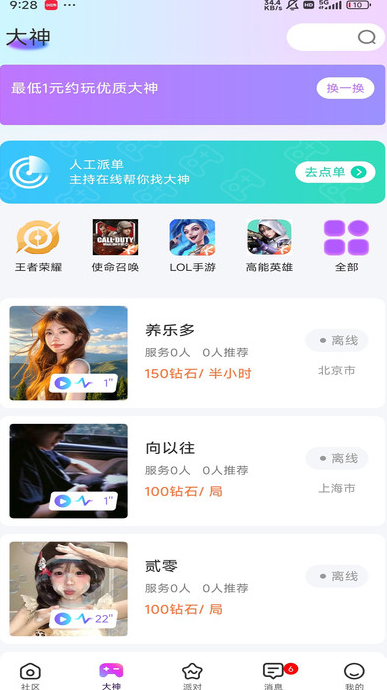 2、线上展示热门玩法、陪玩大神列表及玩家动态,都能找到适配的游戏内容。