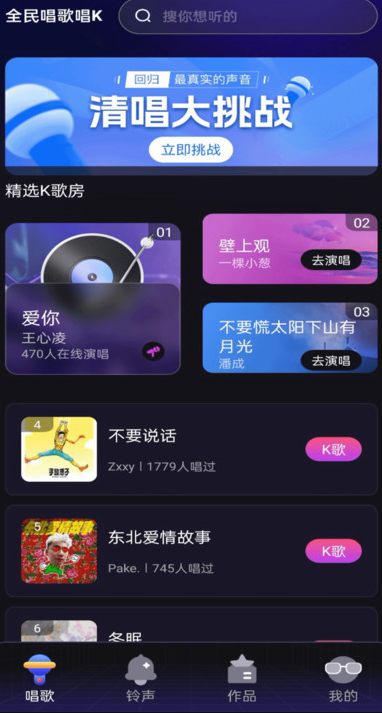 3、用户可欣赏他人演唱的优质作品,学习技巧的同时激发创作灵感,让每一次欢唱都有迹可循。