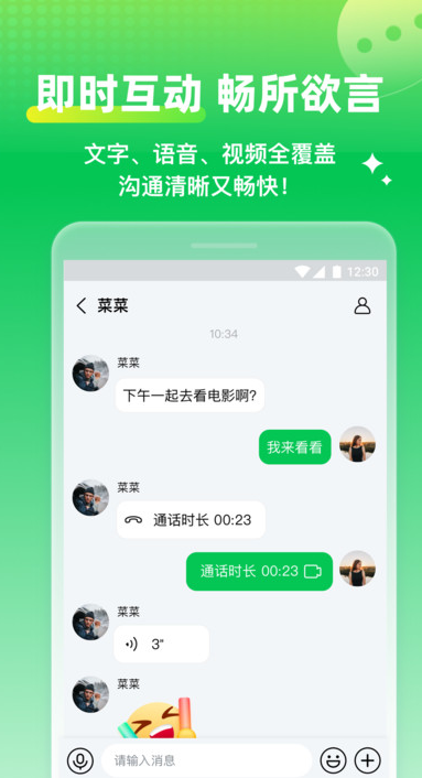 1、有手机就可以随时在线沟通互动,想聊即可开启聊天模式。