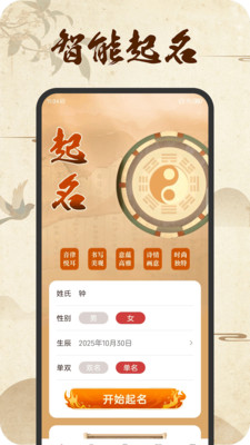 1、是一款智能起名的实用工具,输入姓氏、出生时间等信息后,会结合八字五行与生肖喜忌生成适配名字。