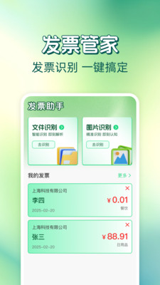 2、精准OCR识别技术,拍照或导入图片、PDF发票,能自动提取代码、金额等信息,识别准确率高,省去手动录入的麻烦。