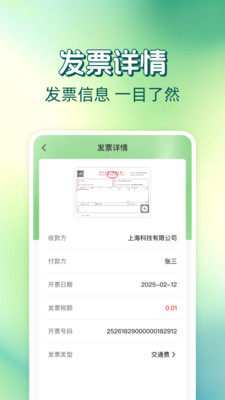 1、兼容多种发票格式,无论是电商平台的电子票还是纸质票扫描件,都能正常识别和管理。