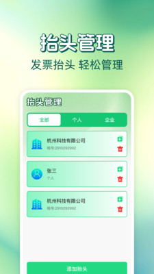 3、内置抬头管理功能,个人、企业抬头信息可提前保存,开票时直接选择填充,还能按使用频率排序,适配不同开票场景。