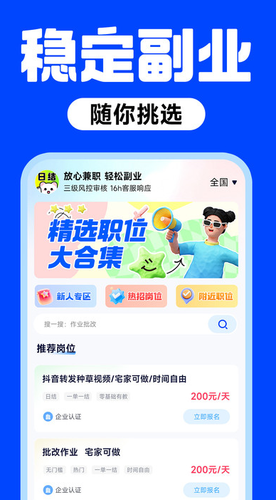 2、不同的用户对兼职的需求是不同的,但在这都是可以轻松找到满意的兼职。
