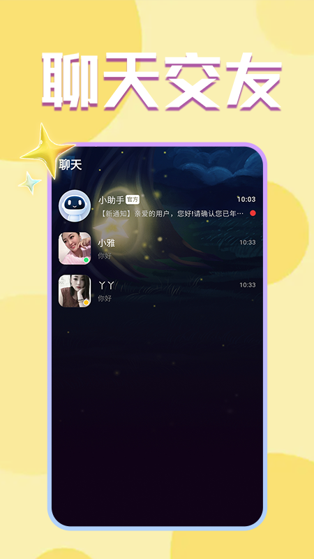 3、用户能够与心仪的陌生人展开线上交流互动,体验真实的沟通氛围。在这里结识更多的朋友聊天和互动以找到自己的人。