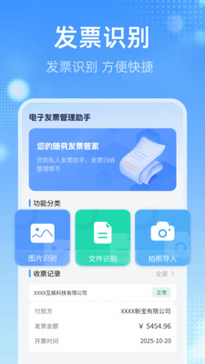 3、安全存储,隐私保护,所有发票信息均加密存储在云端,确保您的数据安全无忧。