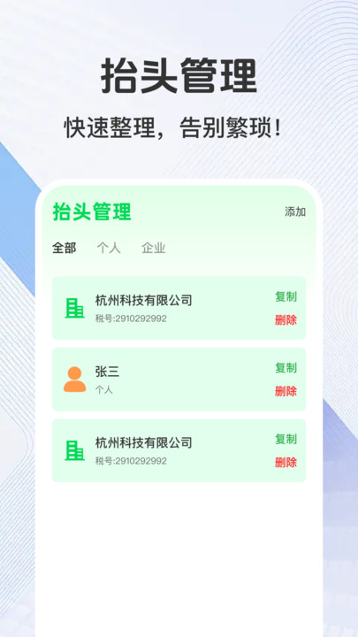 1、常用企业信息云端保存,开票时自动带出税号、地址、银行账号,无需反复手输。