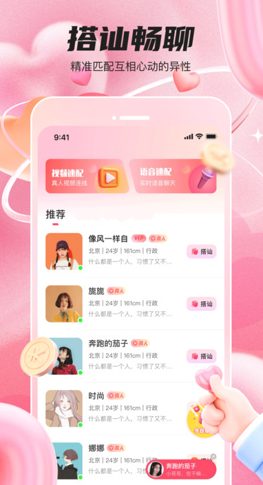 1、无论用户是白天工作间隙想找伴聊天,还是夜间休闲时段想分享生活,打开软件都能找到在线的同城异性。