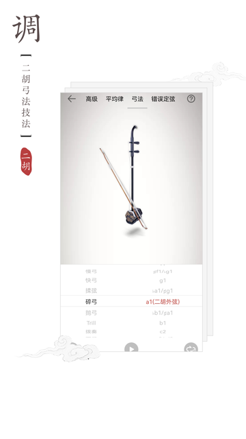 2、在乐器选择界面中,找到并选择二胡作为调音目标。