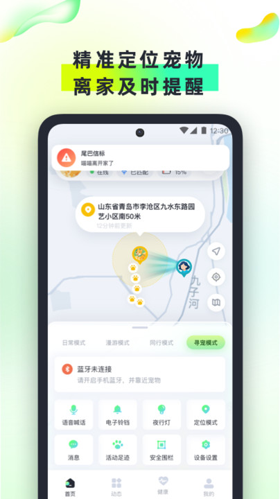 1、当宠物超出设定的安全范围或出现异常情况时,即时推送通知,提醒主人采取相应措施。