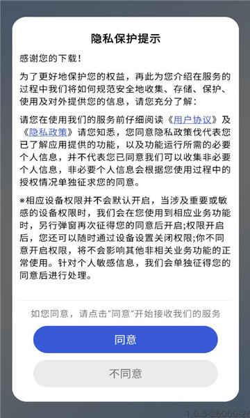 1、打开安装好的软件,点击同意用户协议和隐私政策。