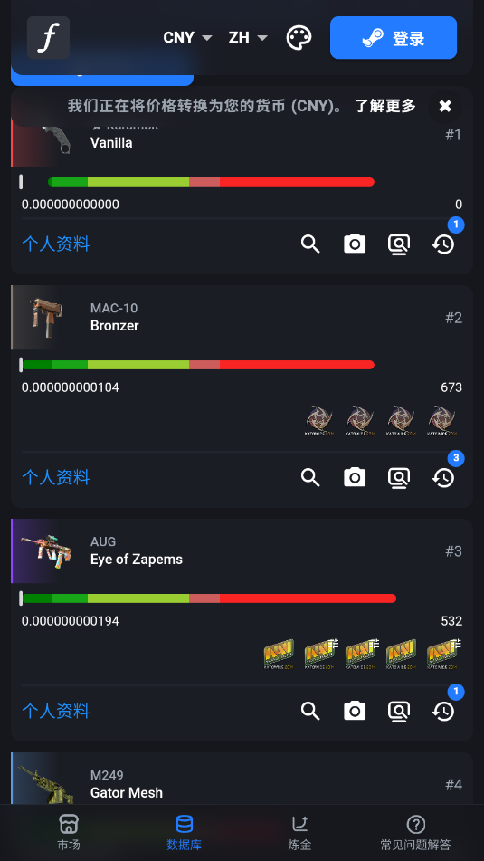 3、专业的CS游戏饰品交易平台,成功地将海量CS游戏饰品资源与强大的数据分析能力相结合。