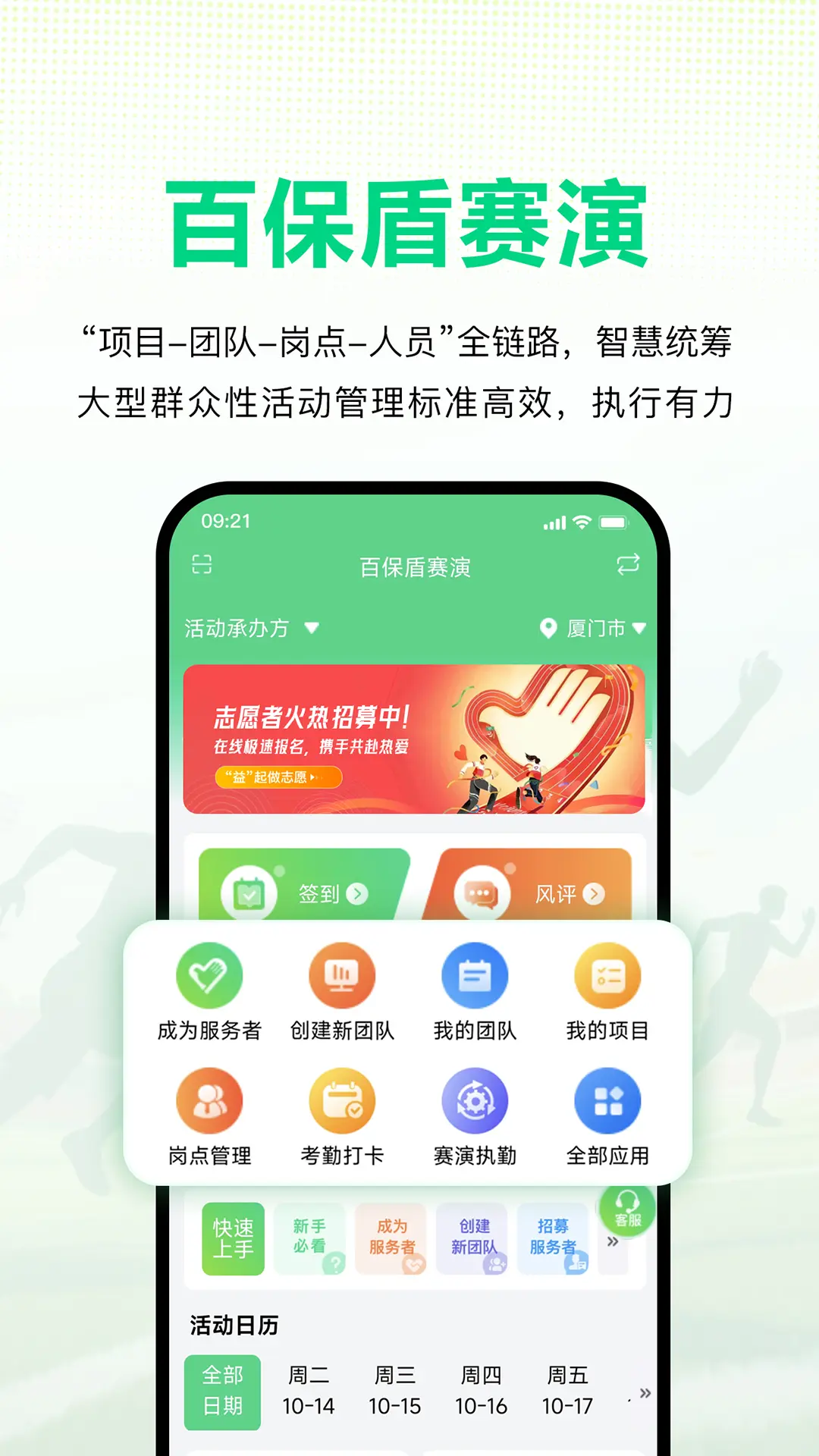 1、通过app发布招募信息,利用智能筛选功能,快速找到符合要求的保安人员与志愿者,确保团队实力满满。