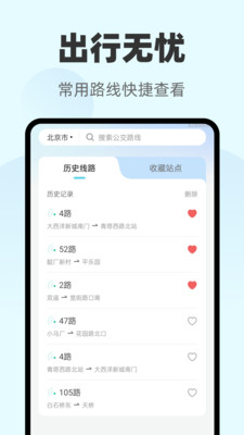 2、支持公交线路搜索,历史出行线路都会显示,还能进行收藏站点管理;