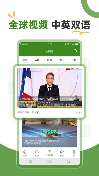 3、视频专区汇集各类新闻影音资料,支持双语字幕切换与语速调节功能。