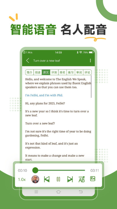 1、拥有超过十万分钟的原声音频库,包含不同口音、语速的真实语境素材,助力沉浸式听力训练与语感培养。