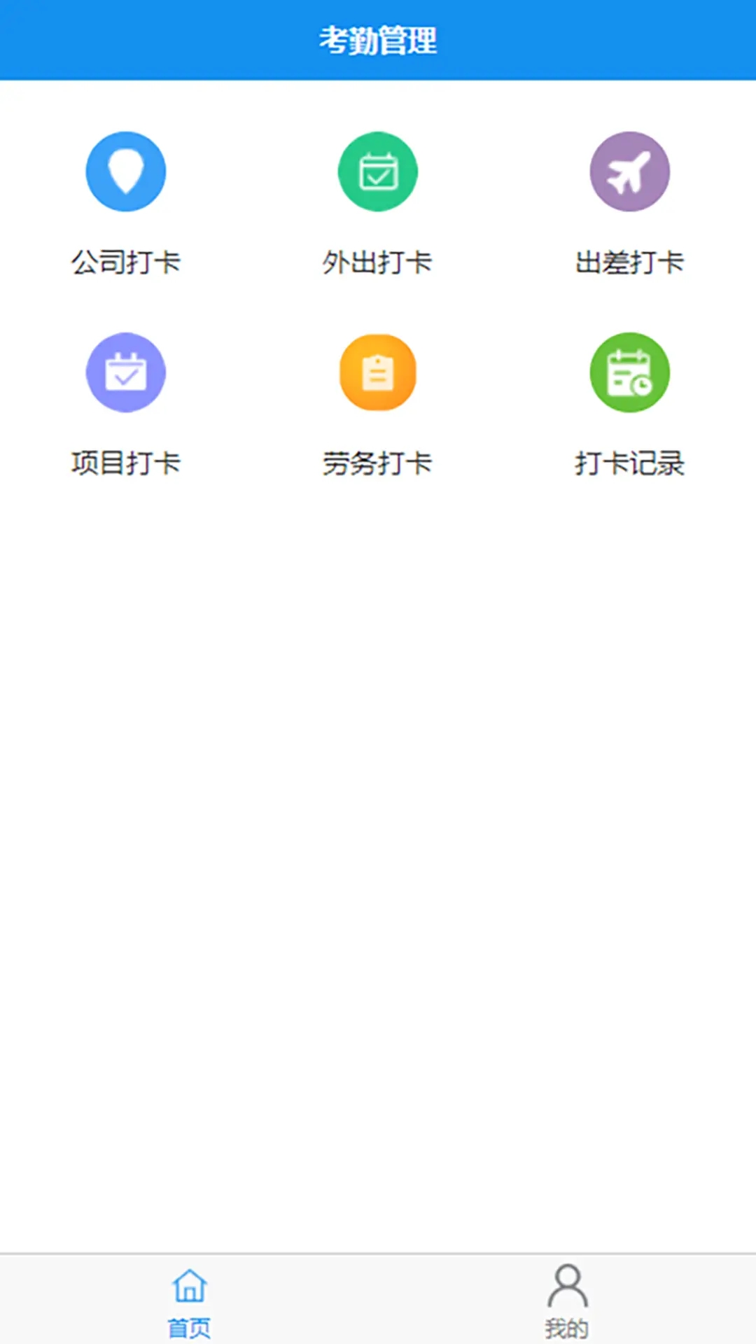 3、首页集中展示多种打卡场景模块,满足不同场景考勤需求。