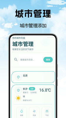 2、可以添加管理城市,查询不同城市的天气;