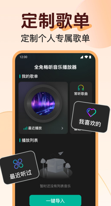 歌曲音乐全免播放器app是一款很实用的免费音乐在线播放软件,用户可以随时来这搜索你想要的音乐,这样你就可以及时在线点击播放,在线听音乐音质无破损,歌曲齐全,热门音乐排行榜也将会随时在线更新,让喜欢音乐的你可以来这体验听歌自由,你也可以及时收藏音乐,你还可以随时在线查看歌词进行歌曲练习。