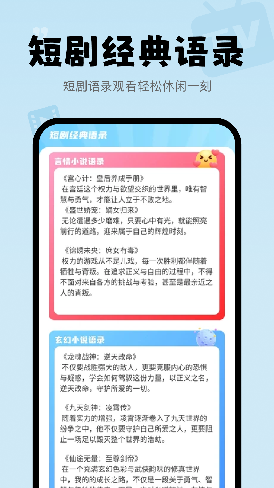 1、汇聚都市、悬疑、古风等万部竖屏短剧,每日自动抓取全网最新版权内容并秒级上架,片库持续膨胀却完全免费,用户无需跳转平台即可一次刷过瘾。