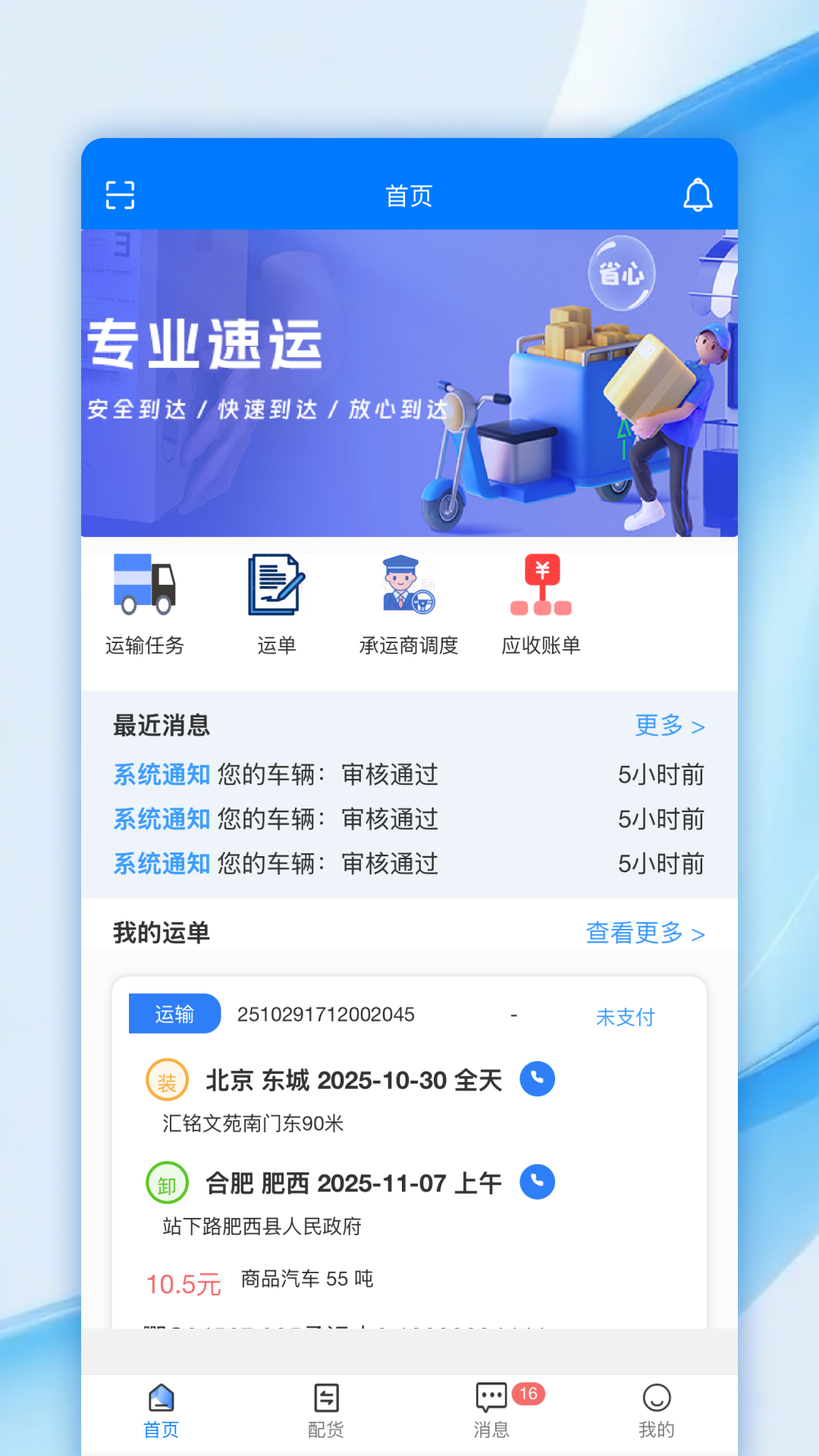 1、平台内置语音播报与语音抢单功能,驾驶途中无需注视屏幕即可收听货源信息并声控接单,降低分心操作风险,让行车更安全,同时不错过高运费订单。