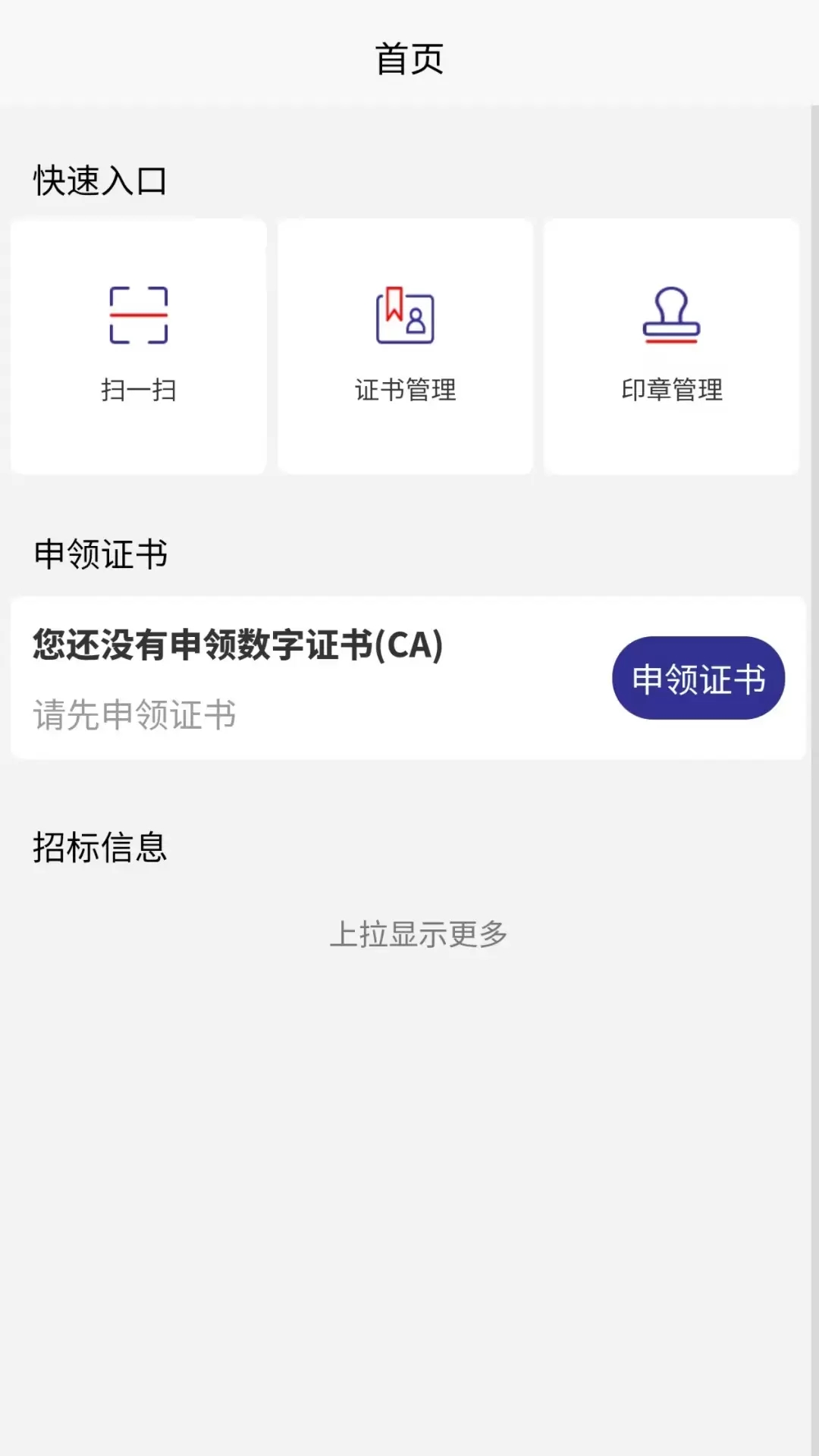 2、进入首页可以看到丰富的功能,线上进行证书管理更加轻松。