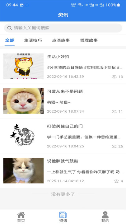 3、进入到【资讯】,可以看到最新的资讯,随时随地参与讨论。