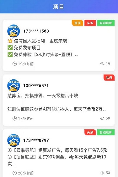 1、提供了一系列的任务类型,包括注册任务、推广分享、广告观看等。