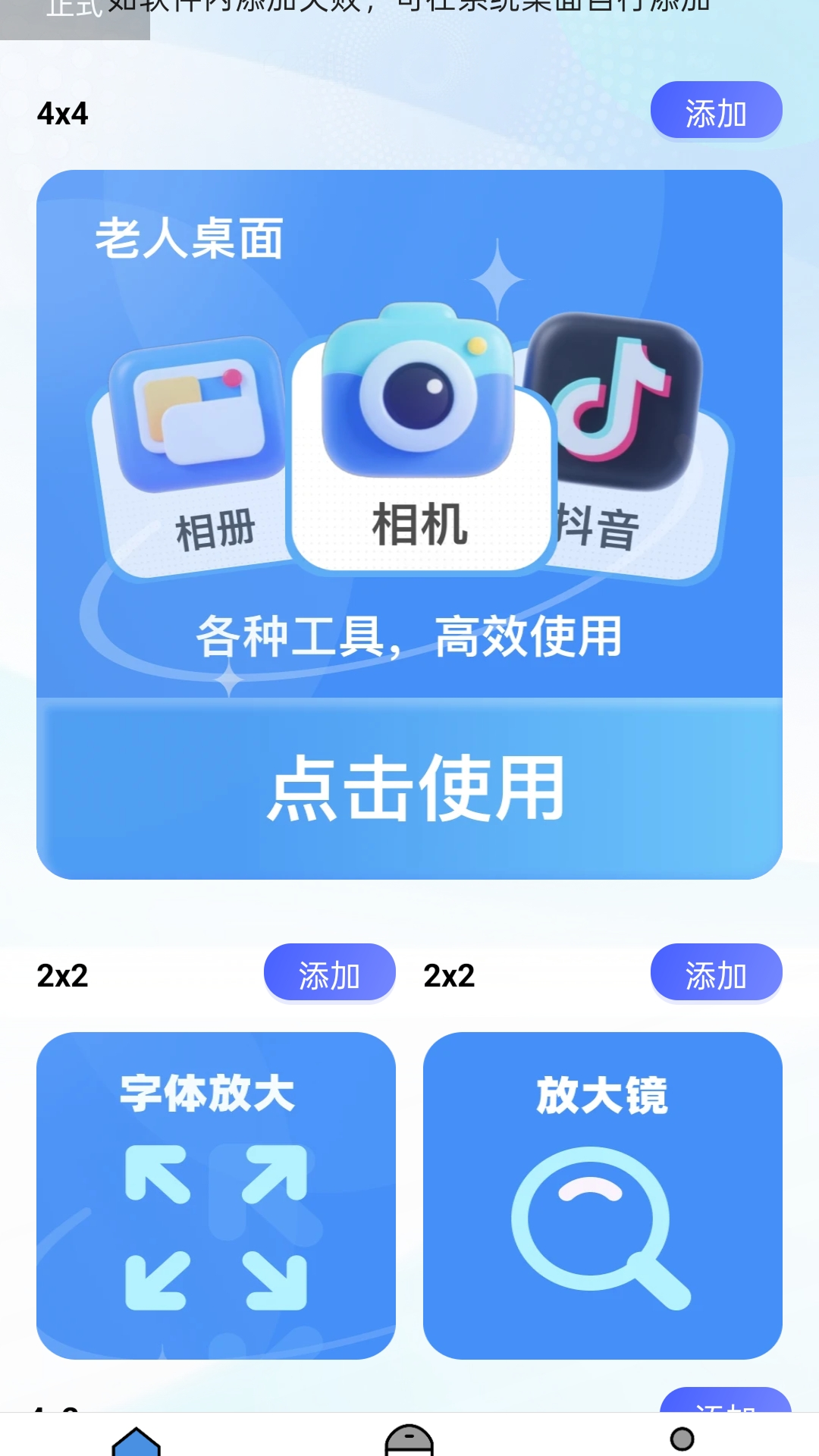 4、进入老人桌面板块中,提供更清楚放大镜和更清楚字体放大的功能,让用户随心选择使用。
