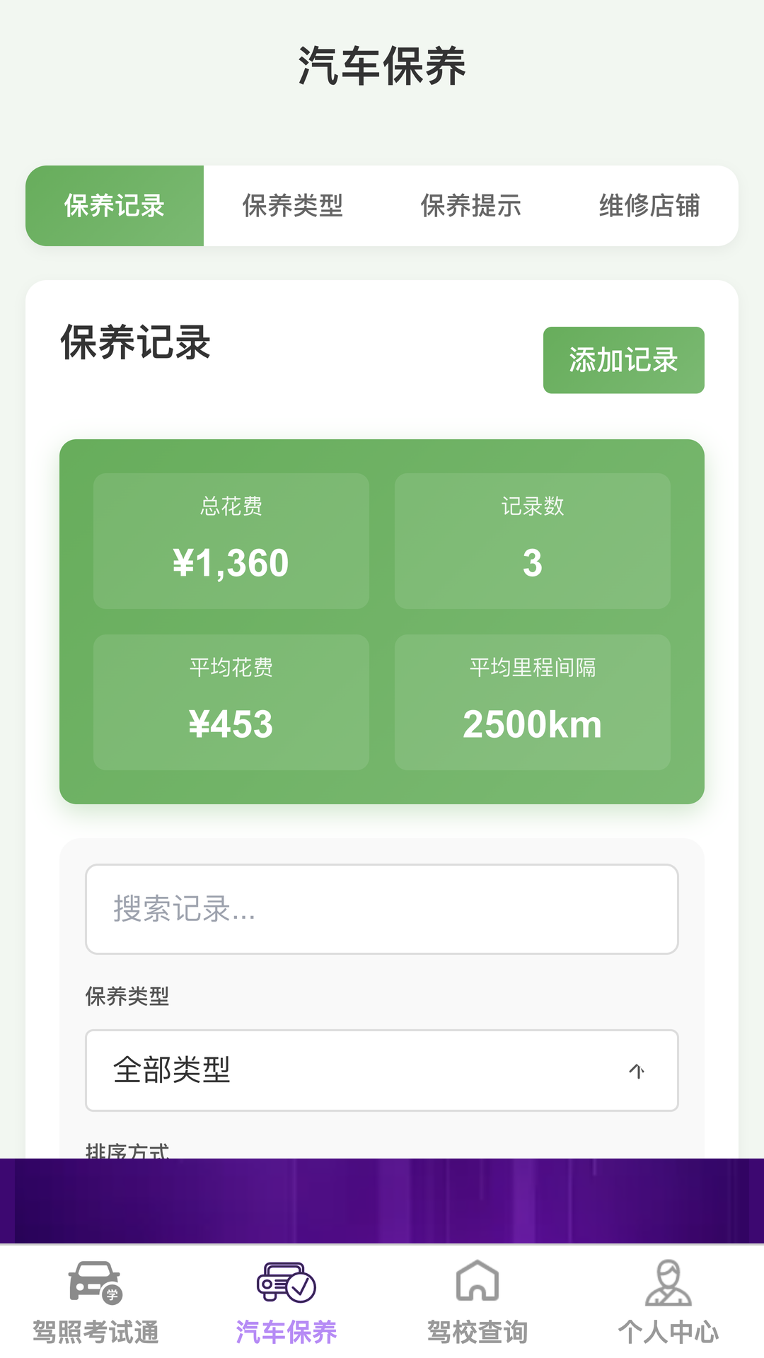 2、汽车保养板块提供养护提醒功能,记录机油更换、轮胎换位等时间,到期自动推送,避免遗漏关键项目。