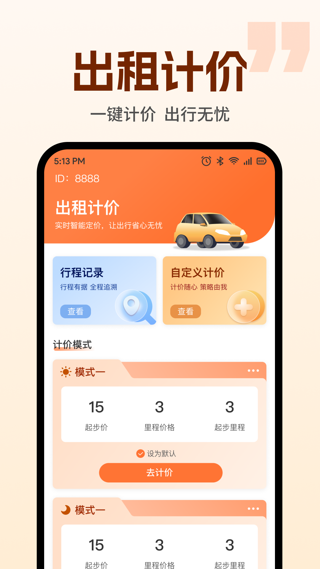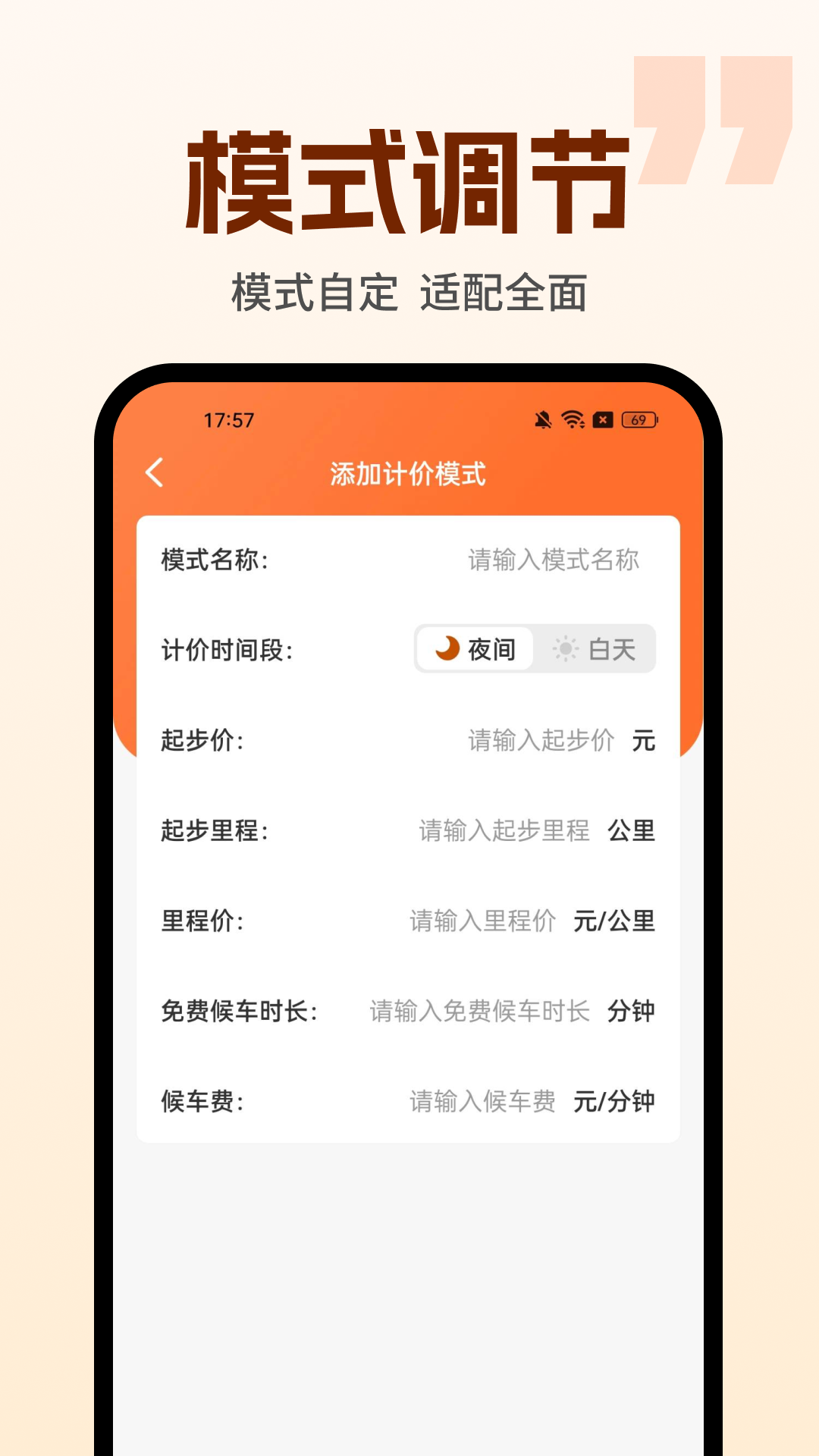 3、根据实际需求,轻松设定起步价、每公里费用及等候计费标准,满足不同场景下的计价需求。