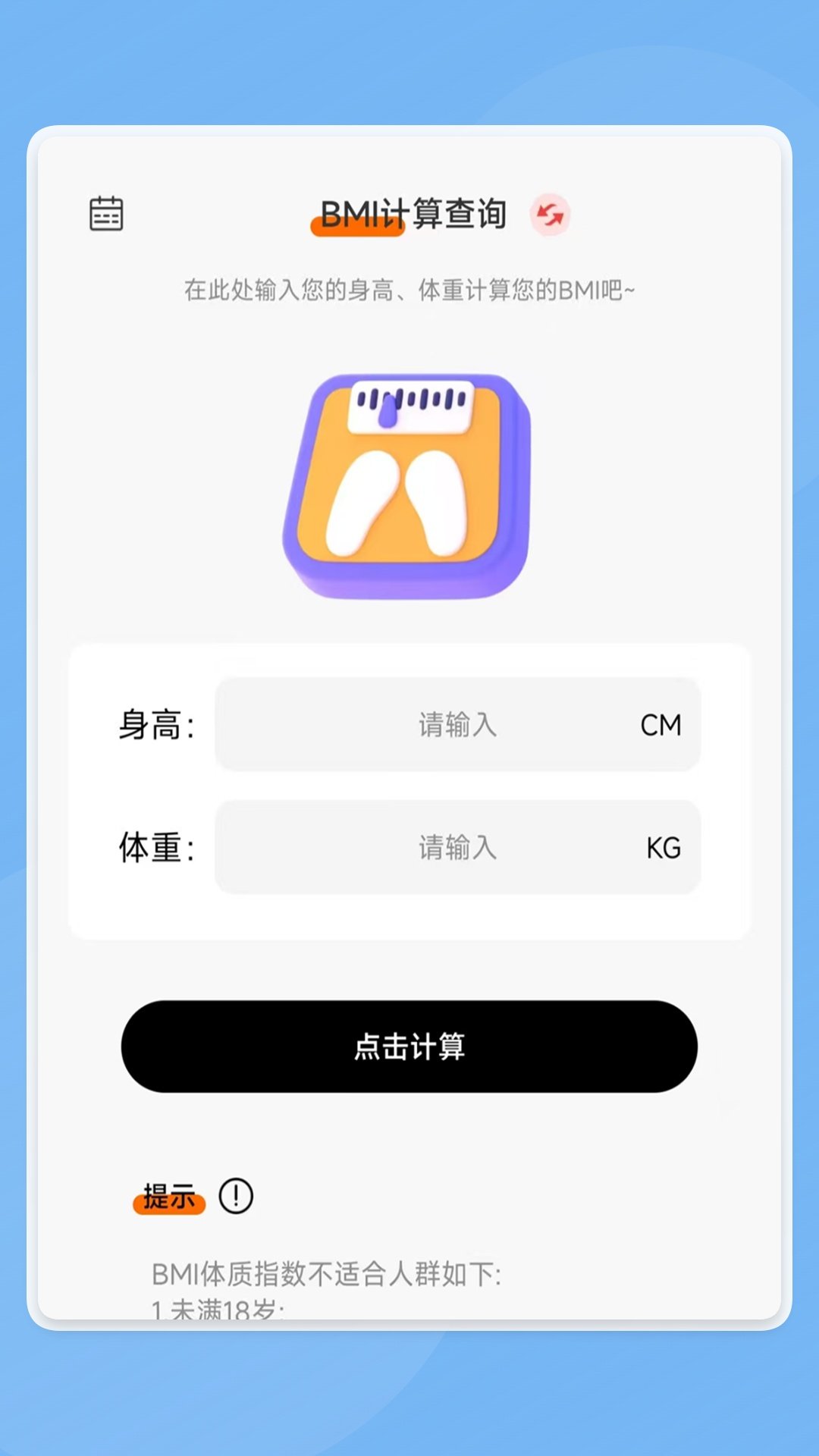 2、BMI计算支持历史记录保存,可追踪体重变化趋势,帮助制定合理的健身或饮食计划,兼顾实用性和指导性。