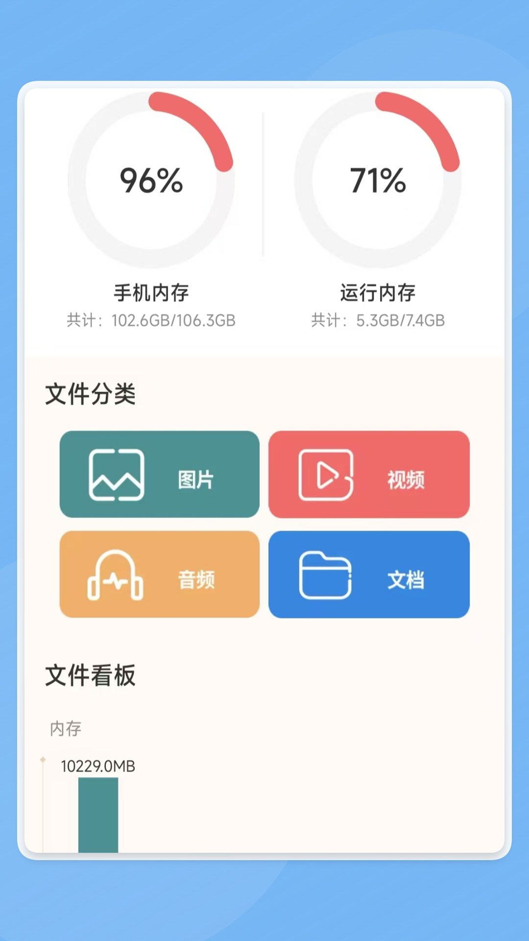 2、手机内存管理很给力,深度扫描缓存、重复文件,一键清理释放空间,让手机运行更流畅不卡顿。
