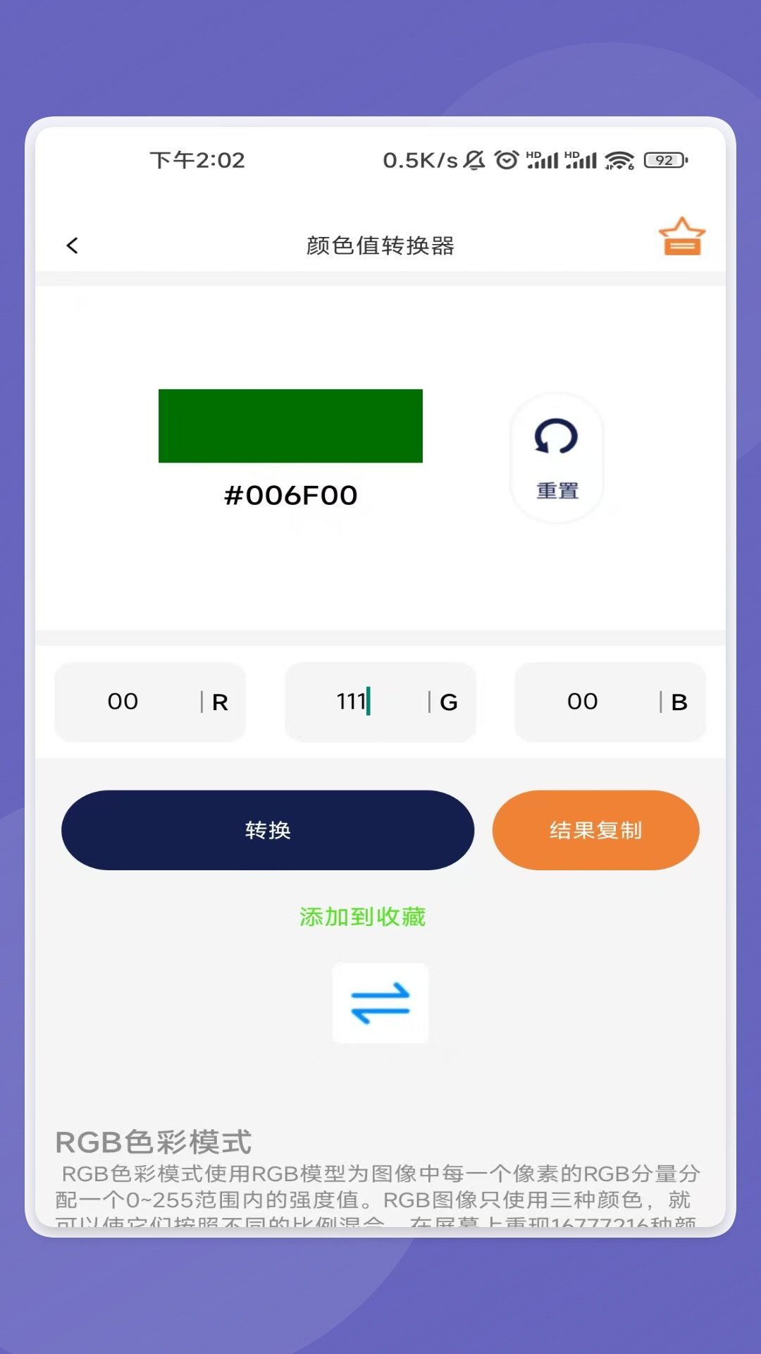 1、颜色值转换器可实时预览颜色效果,支持收藏常用色值,设计工作中快速调用,提升创作效率。