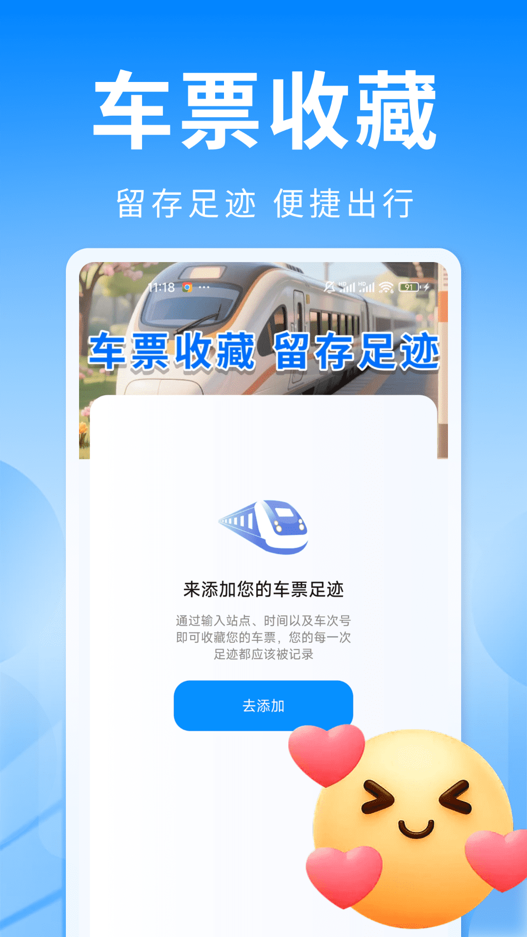 4、点击【车票收藏】进入,一键即可来轻松添加车票的信息。