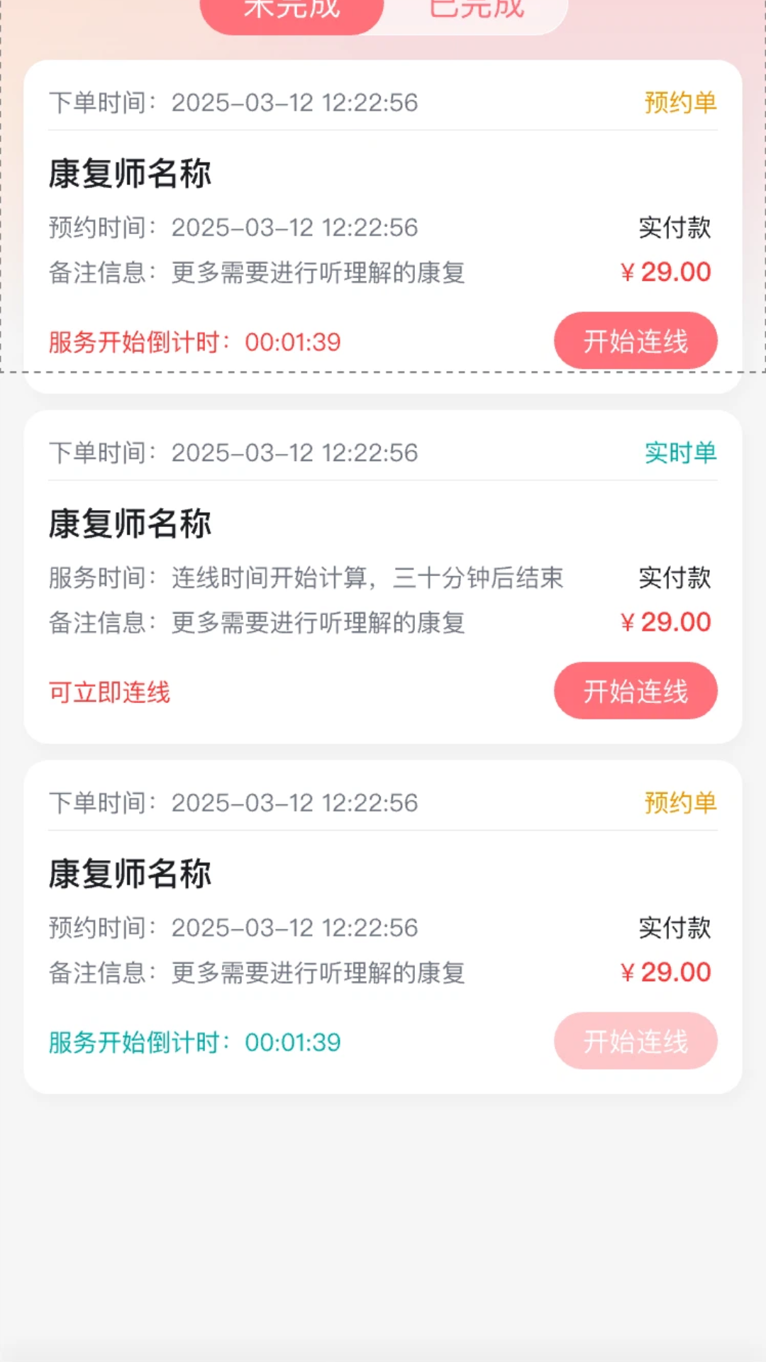 2、康复师可创建不同时长、频率、针对不同康复阶段的服务项目并上架;统一管理所有接收到的订单状态。