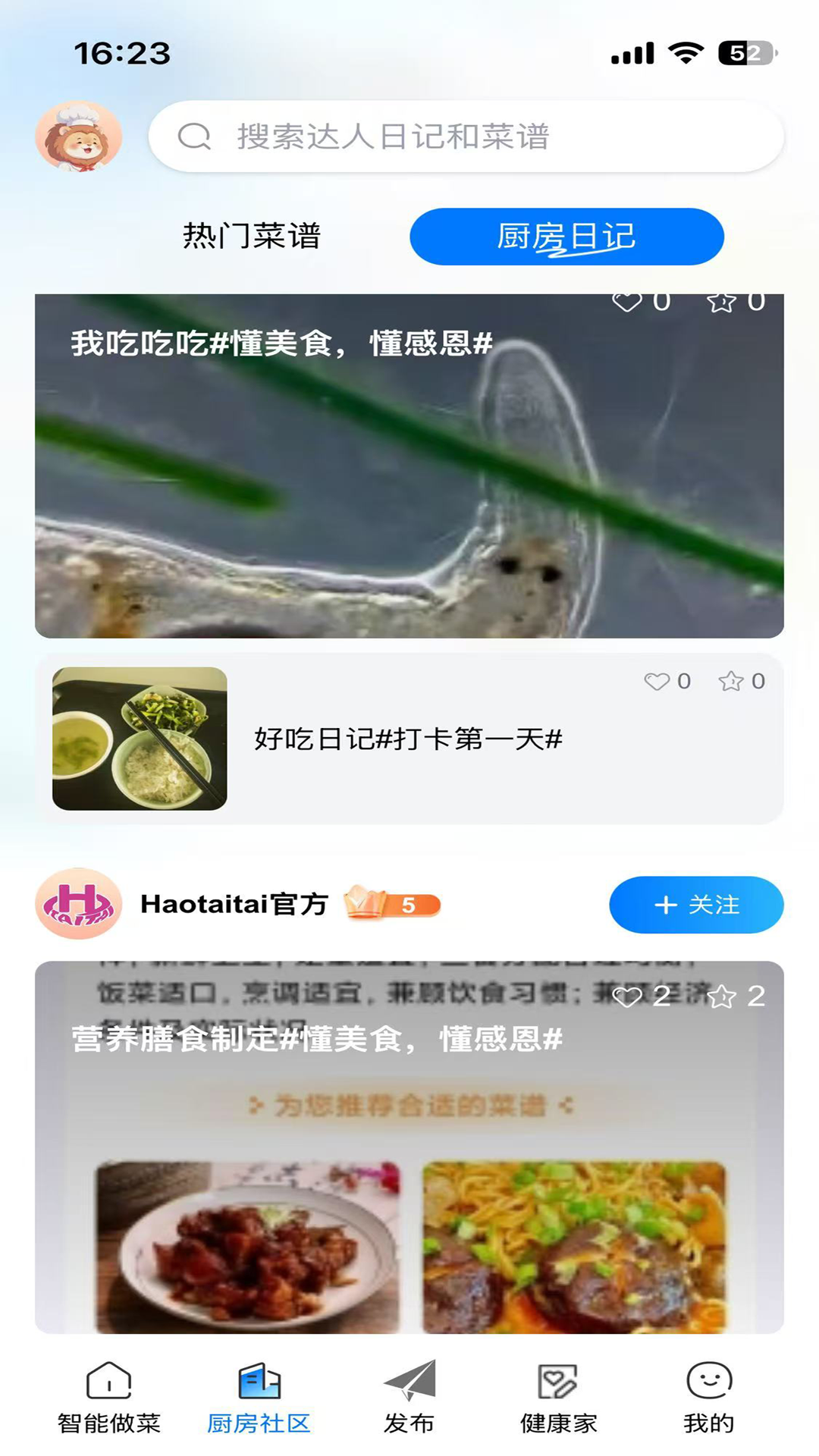 3、提供从零基础跟做视频到高手创意菜谱的阶梯式内容,满足不同厨艺水平用户的学习、记录与展示需求。