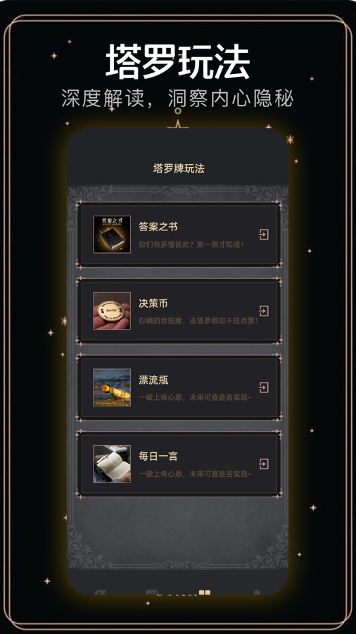 4、多种塔罗牌的玩法任你选择,答案之书、yes or no、流浪瓶、每日一言等。